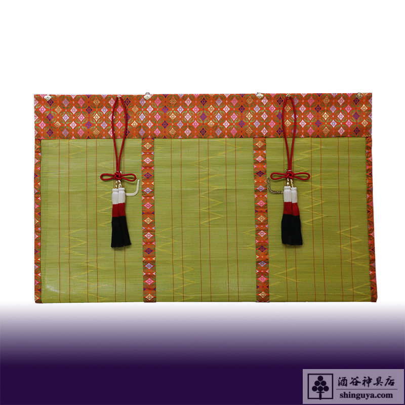 ホーム > 別注品 > ご家庭での神様のお祀り > 御簾 綾錦朱地金糸入り 145.5×140 ㎝