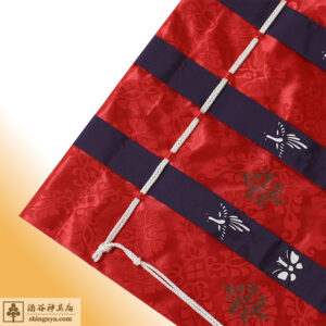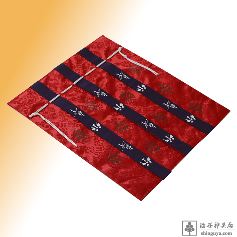 幅35㎝丈41㎝、布地は赤地で小葵柄が織り込まれた人絹緞子です。
