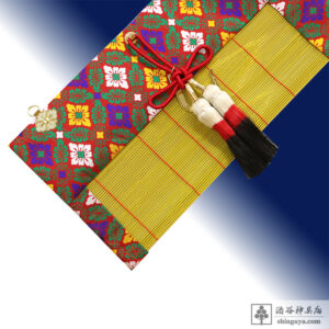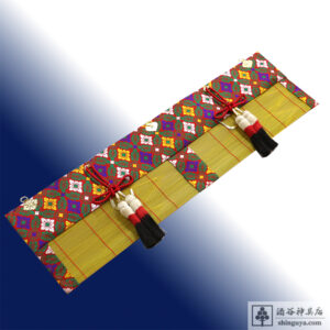 幅72㎝丈20㎝、竹は綿糸表編み、布地は正絹本大和錦赤、 房は麻房三段染めでございます。