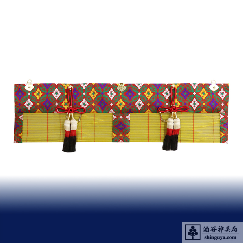 ホーム > 別注品 > 神壇 祭壇 > 神壇用御簾 72×20㎝ 正絹大和錦赤 麻房付