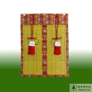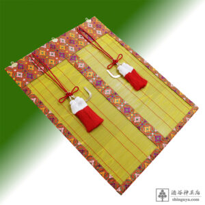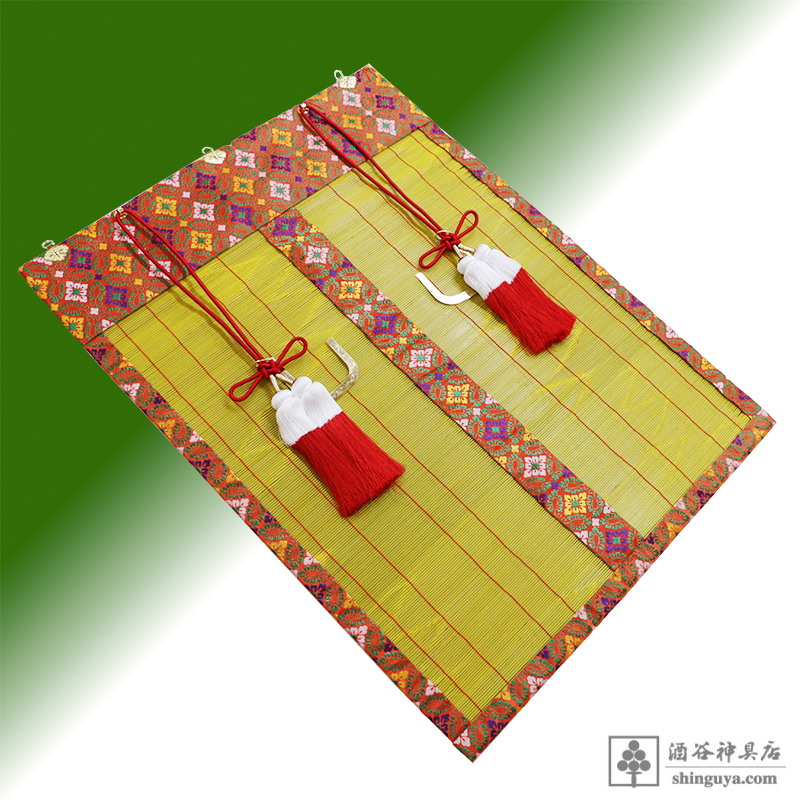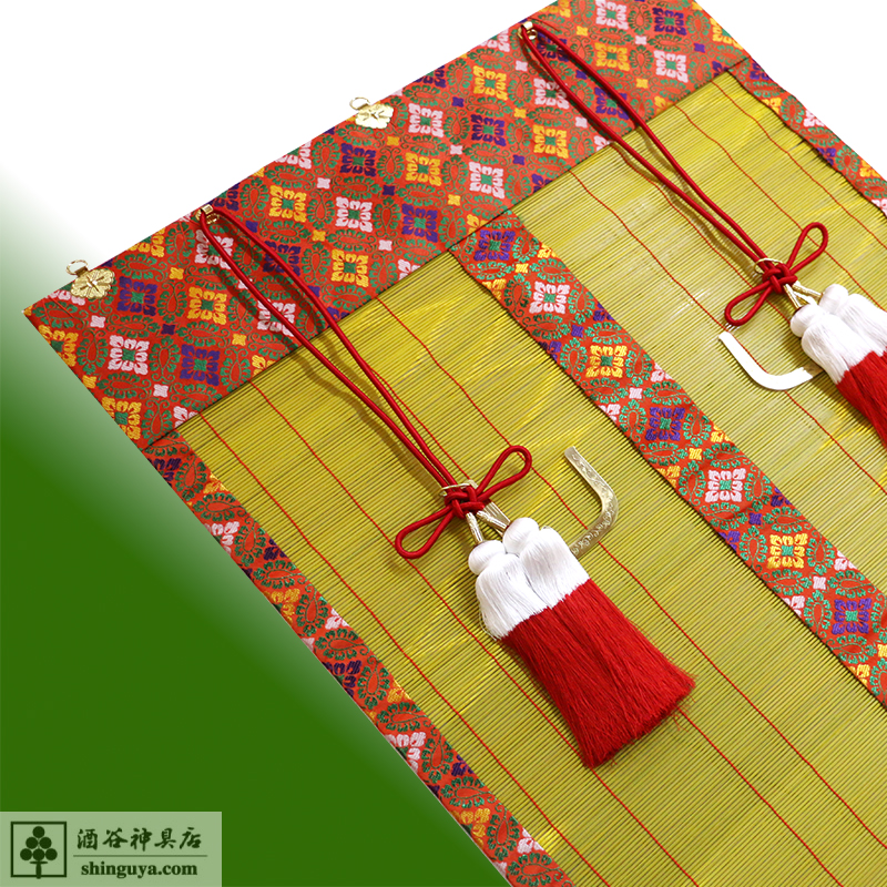 幅59cm丈77㎝、竹は綿糸表編み、布は新大和錦赤、房は切房二段染めです。