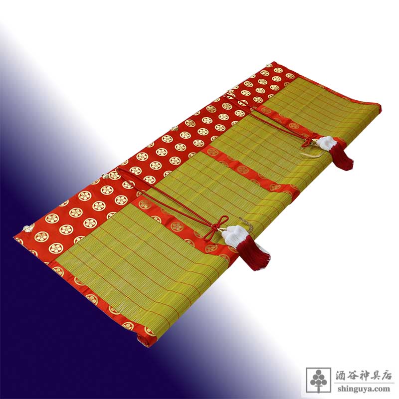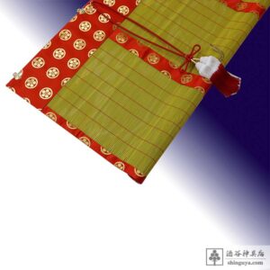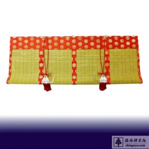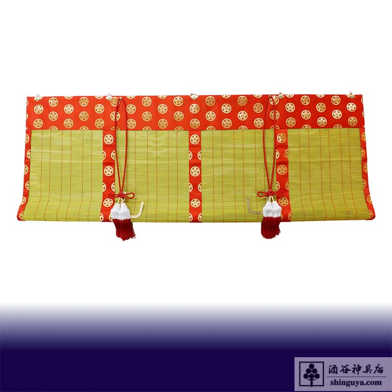 ホーム > 別注品 > 神具 > 御簾 162×73 (パイプ入り 58㎝巻上)赤地金紋 雅10釜