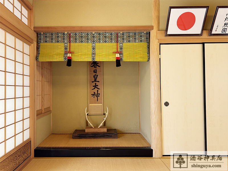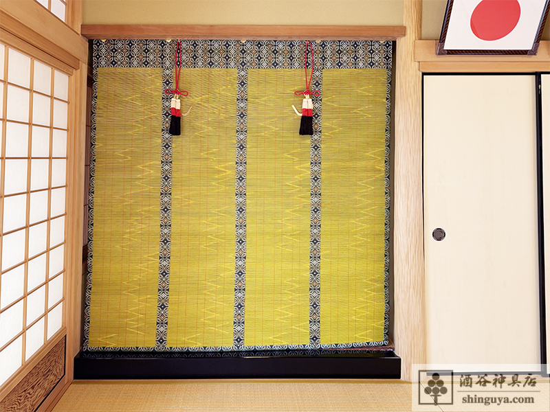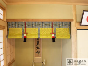 本殿から床の間にご遷座後、本殿の改修が完成するまで御簾を下ろして丁重にお祀りされます。