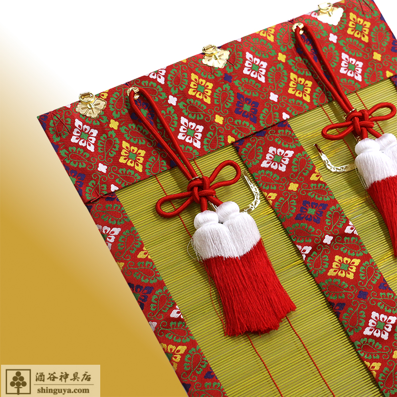 ホーム > 別注品 > ご家庭での神様のお祀り > 御簾 新大和錦 赤 切房 38.5×44㎝