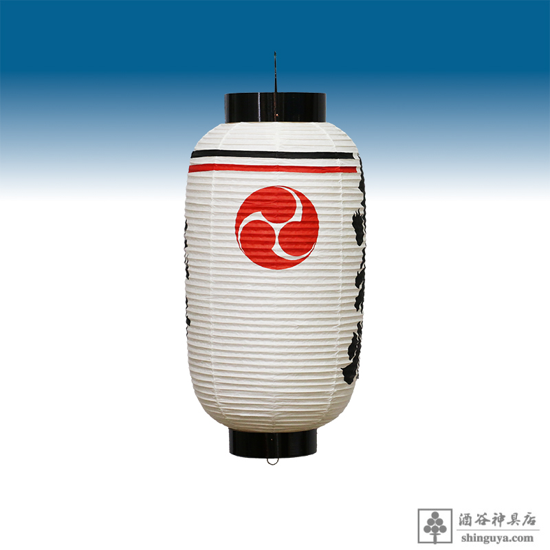 ブログNo.5058 高張提灯 1尺3寸 御神燈 崩し文字 左右 左三つ巴 上部 黒赤二本線