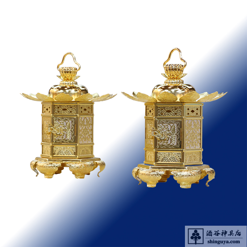 神殿新設に伴い、軒下の左右に六角吊り灯籠をお取り付けされます。