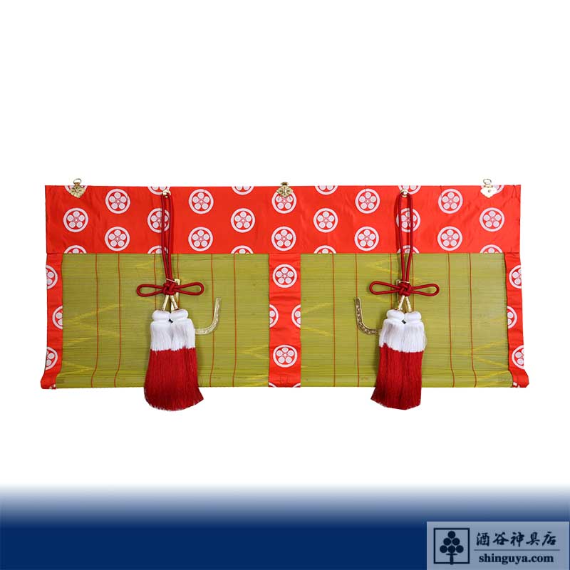 御簾 赤地白紋 90×60 ㎝(パイプ入り40㎝巻上)