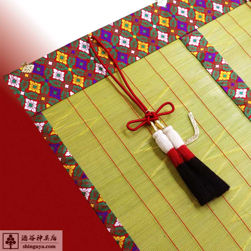 布地は正絹本倭錦、房は麻房3段染めでございます。